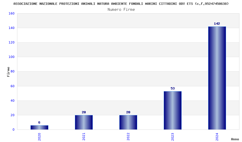 | Anno | Firme | Importi | Media | Naz. | Reg. | Prov. | Comu. |