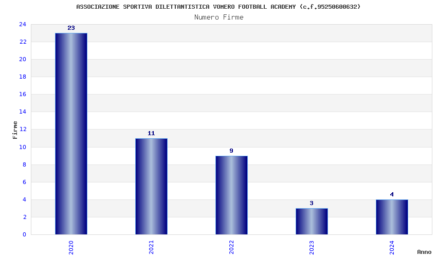 | Anno | Firme | Importi | Media | Naz. | Reg. | Prov. | Comu. |