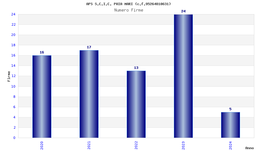 | Anno | Firme | Importi | Media | Naz. | Reg. | Prov. | Comu. |
