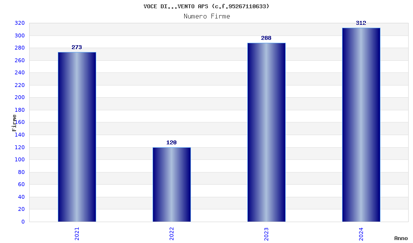 | Anno | Firme | Importi | Media | Naz. | Reg. | Prov. | Comu. |