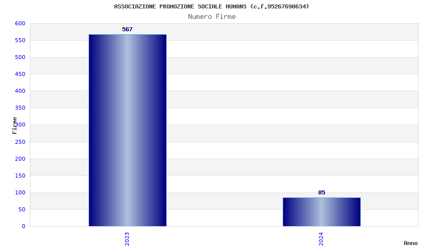 | Anno | Firme | Importi | Media | Naz. | Reg. | Prov. | Comu. |
