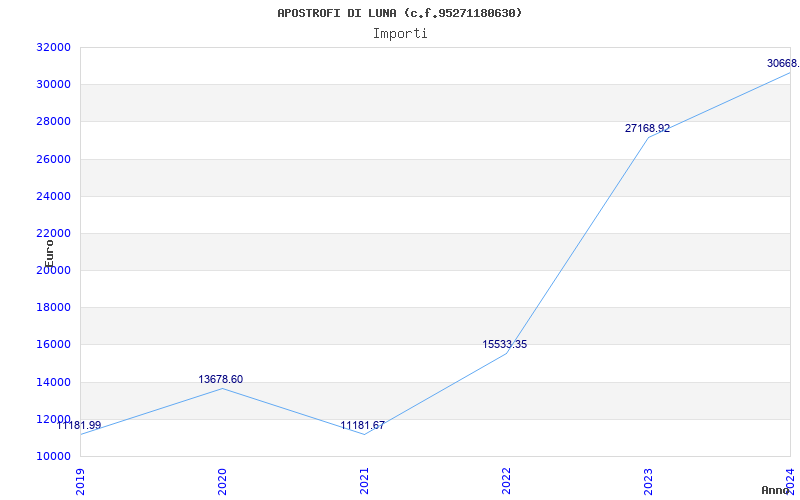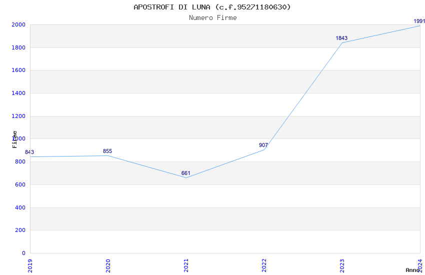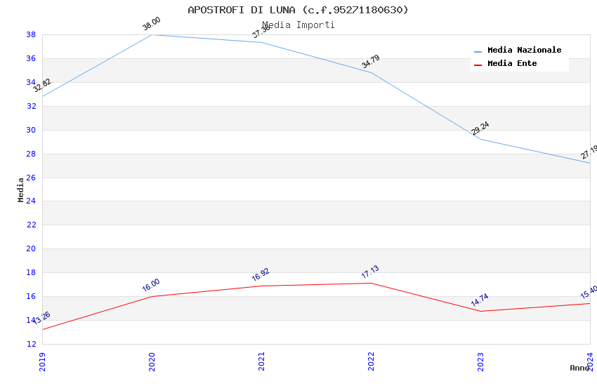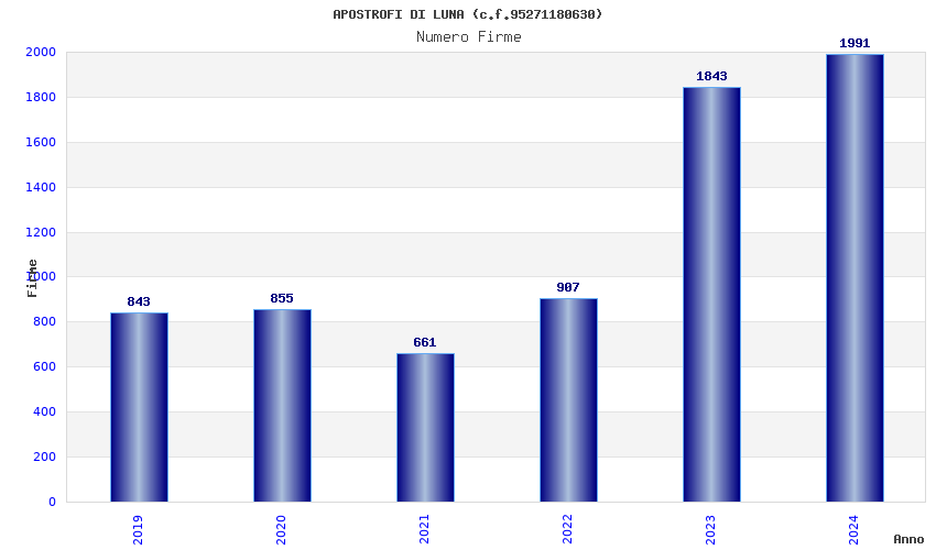 | Anno | Firme | Importi | Media | Naz. | Reg. | Prov. | Comu. |