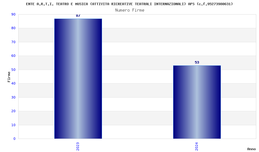 | Anno | Firme | Importi | Media | Naz. | Reg. | Prov. | Comu. |