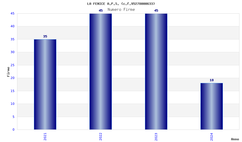 | Anno | Firme | Importi | Media | Naz. | Reg. | Prov. | Comu. |