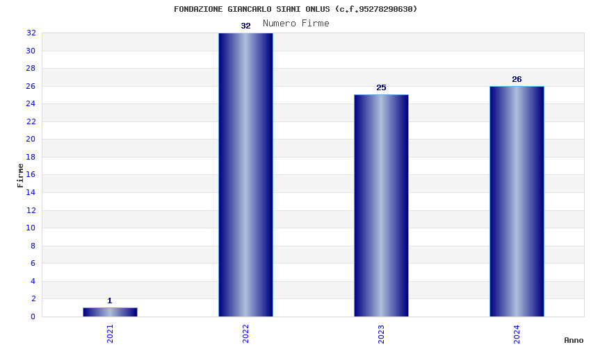 | Anno | Firme | Importi | Media | Naz. | Reg. | Prov. | Comu. |