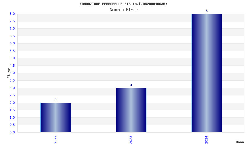 | Anno | Firme | Importi | Media | Naz. | Reg. | Prov. | Comu. |