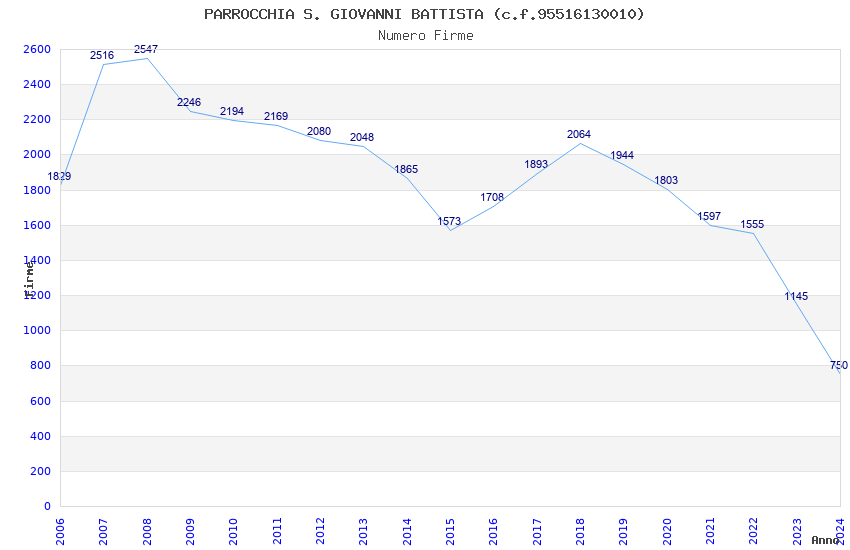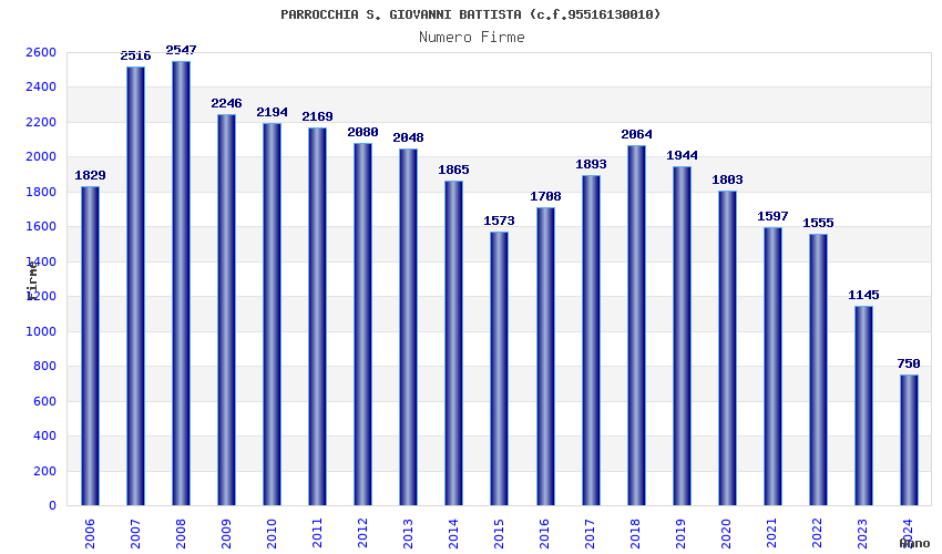 | Anno | Firme | Importi | Media | Naz. | Reg. | Prov. | Comu. |