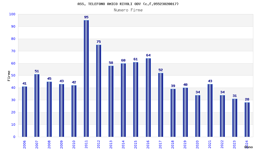 | Anno | Firme | Importi | Media | Naz. | Reg. | Prov. | Comu. |