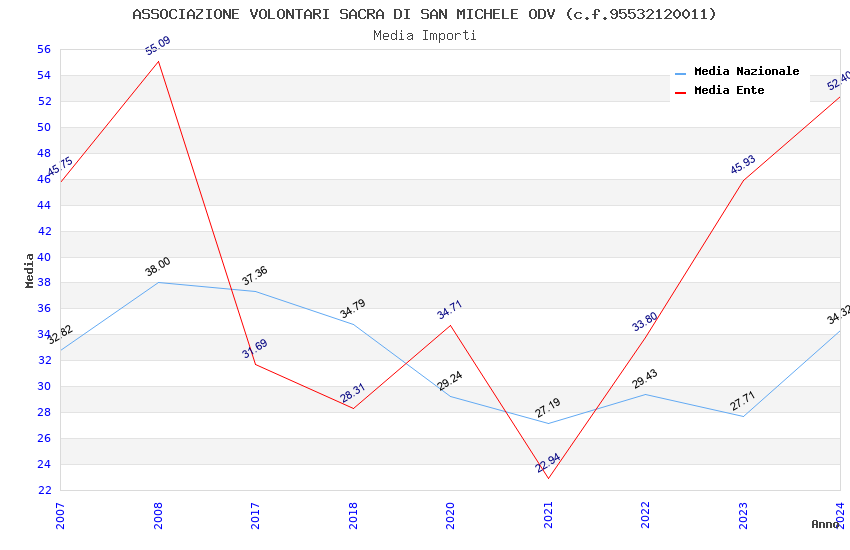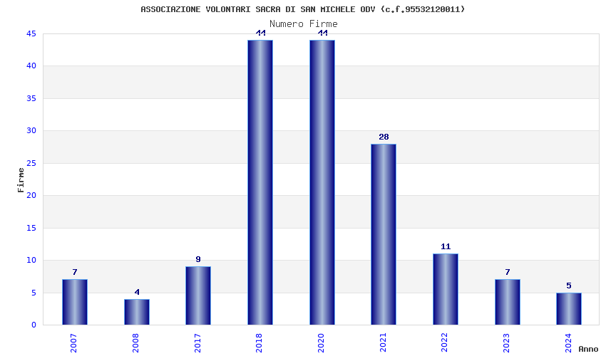 | Anno | Firme | Importi | Media | Naz. | Reg. | Prov. | Comu. |