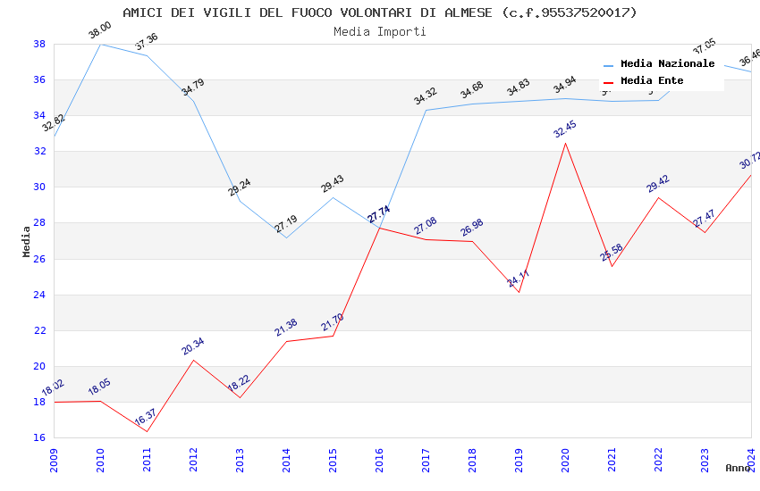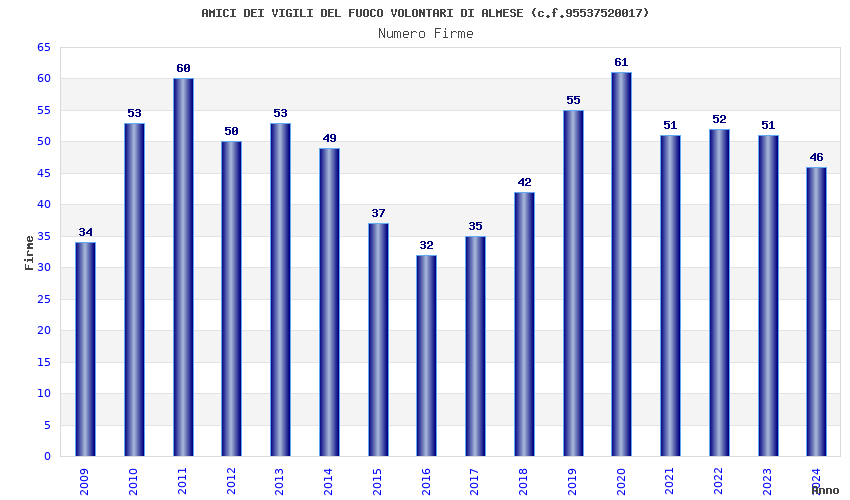 | Anno | Firme | Importi | Media | Naz. | Reg. | Prov. | Comu. |