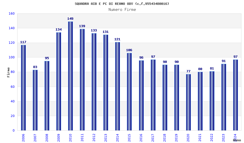| Anno | Firme | Importi | Media | Naz. | Reg. | Prov. | Comu. |