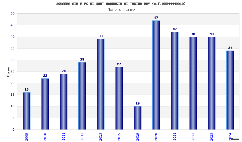 | Anno | Firme | Importi | Media | Naz. | Reg. | Prov. | Comu. |