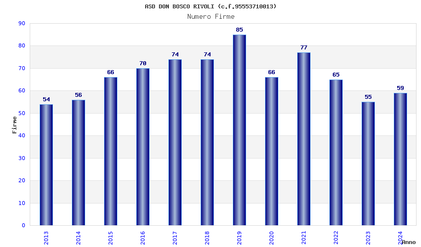 | 2019 | 85 | 3.670,55 | 43,18 | 14.852 | 1.100 | 599 | 7 |