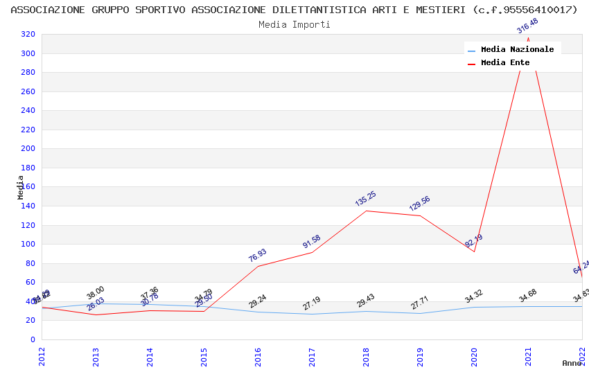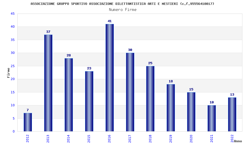 | Anno | Firme | Importi | Media | Naz. | Reg. | Prov. | Comu. |