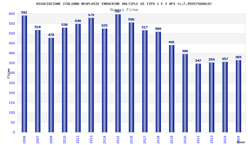 | Anno | Firme | Importi | Media | Naz. | Reg. | Prov. | Comu. |