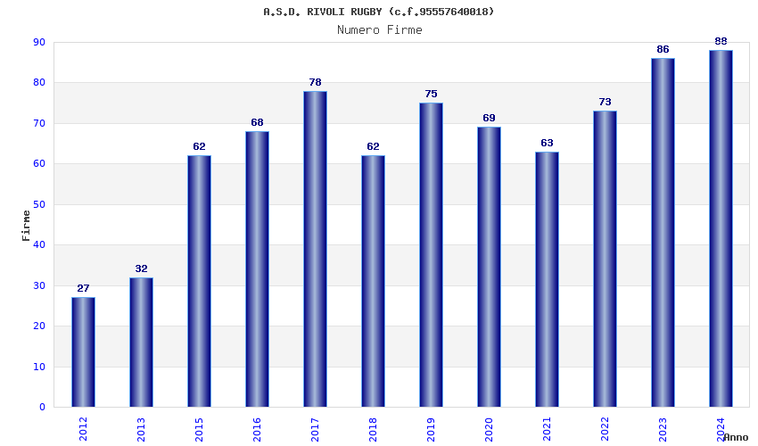 | 2023 | 86 | 4.125,51 | 47,97 | 13.011 | 889 | 495 | 6 |