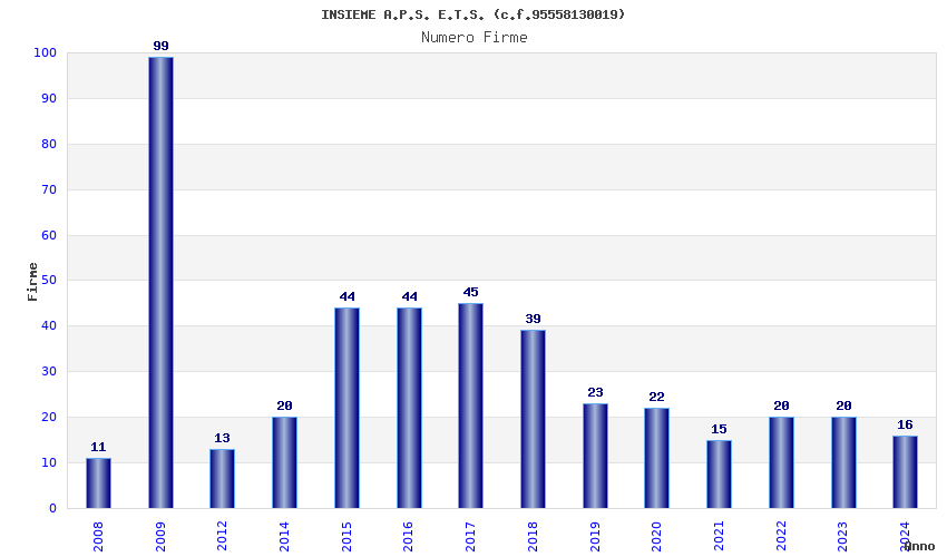 | Anno | Firme | Importi | Media | Naz. | Reg. | Prov. | Comu. |