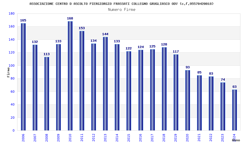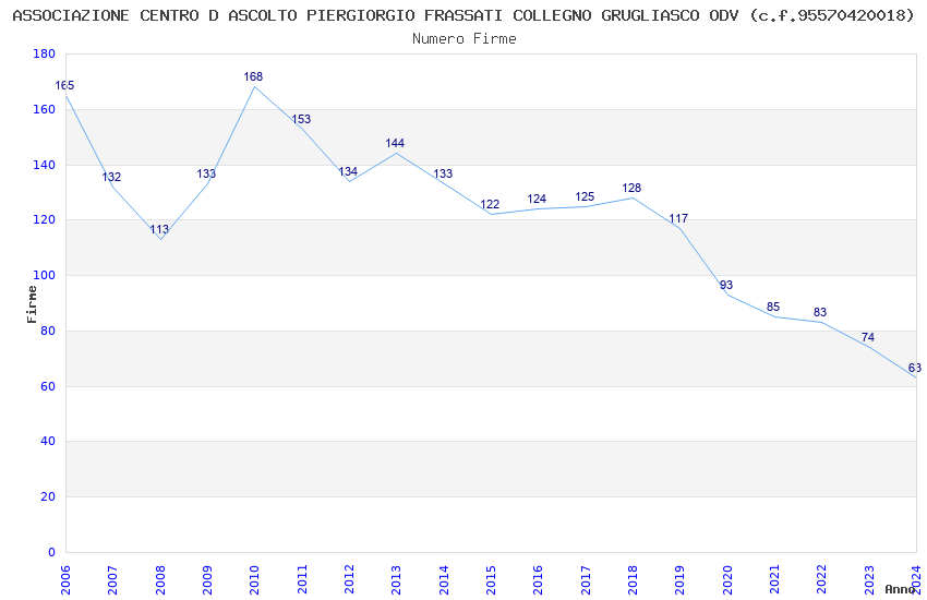 | Anno | Firme | Importi | Media | Naz. | Reg. | Prov. | Comu. |