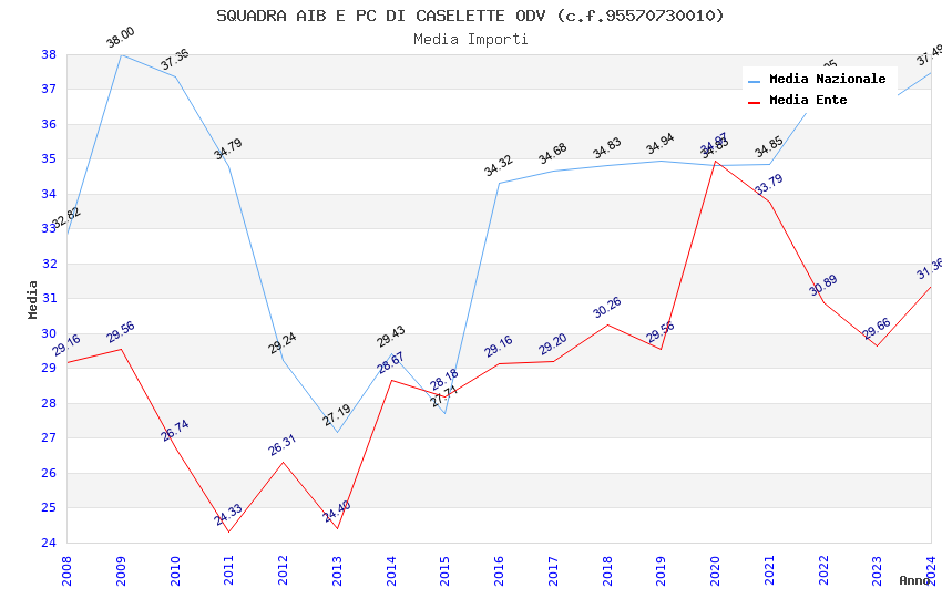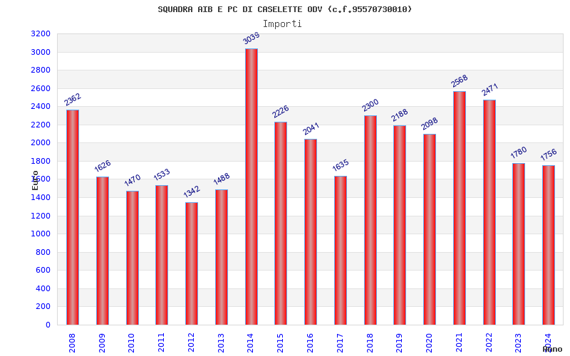 | Anno | Firme | Importi | Media | Naz. | Reg. | Prov. | Comu. |