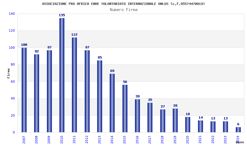 | Anno | Firme | Importi | Media | Naz. | Reg. | Prov. | Comu. |