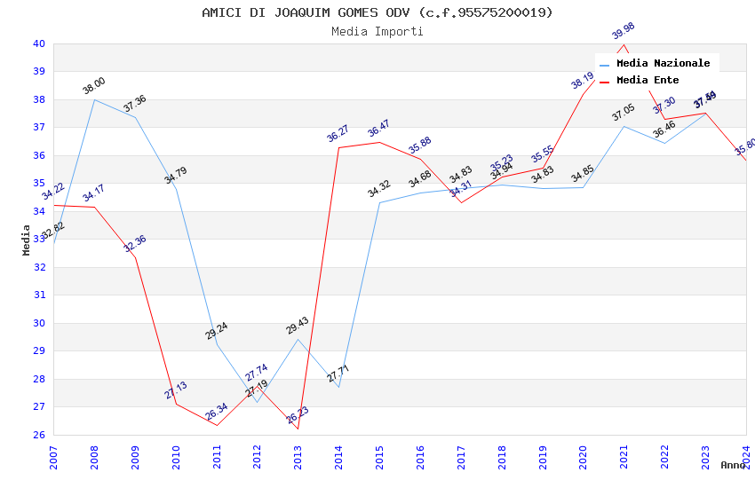 | Anno | Firme | Importi | Media | Naz. | Reg. | Prov. | Comu. |