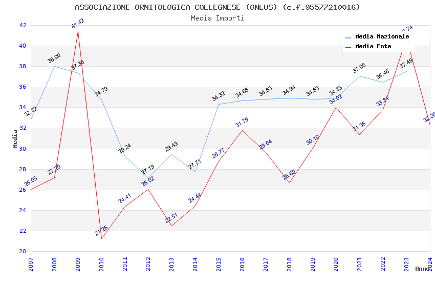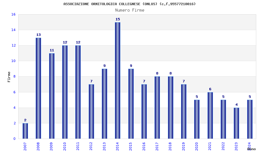 | Anno | Firme | Importi | Media | Naz. | Reg. | Prov. | Comu. |