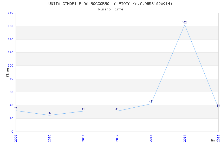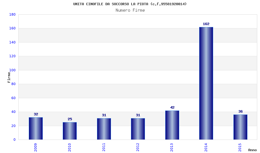 | Anno | Firme | Importi | Media | Naz. | Reg. | Prov. | Comu. |