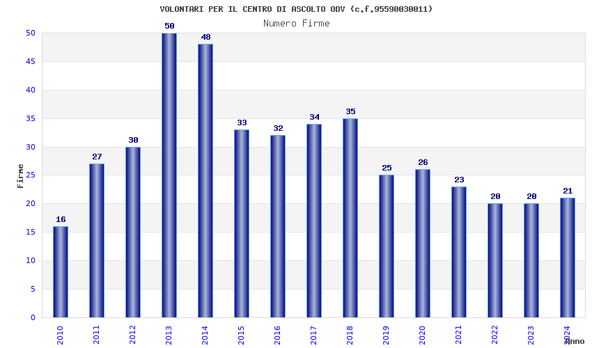 | Anno | Firme | Importi | Media | Naz. | Reg. | Prov. | Comu. |
