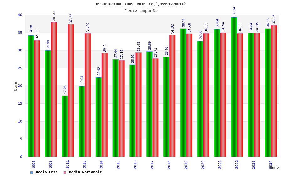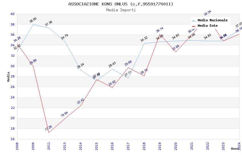 | Anno | Firme | Importi | Media | Naz. | Reg. | Prov. | Comu. |