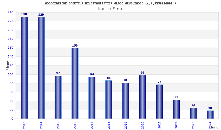 | Anno | Firme | Importi | Media | Naz. | Reg. | Prov. | Comu. |
