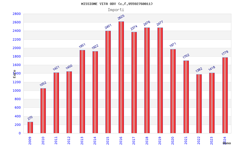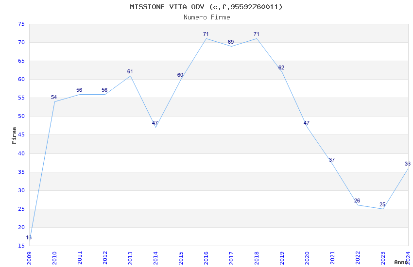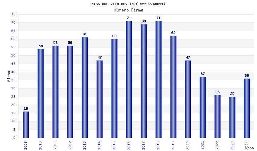 | 2016 | 71 | 2.624,83 | 36,97 | 18.958 | 1.460 | 755 | 12 |