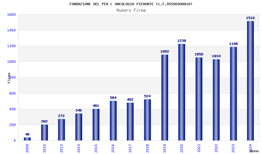 | Anno | Firme | Importi | Media | Naz. | Reg. | Prov. | Comu. |
