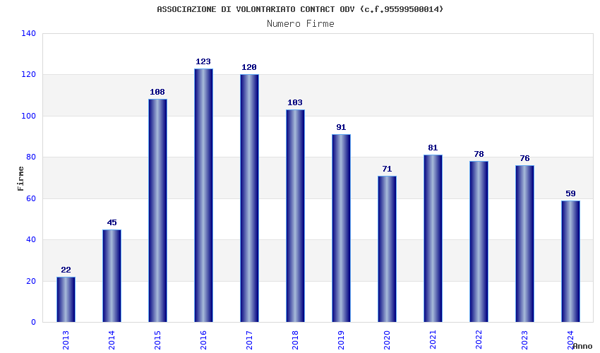 | Anno | Firme | Importi | Media | Naz. | Reg. | Prov. | Comu. |