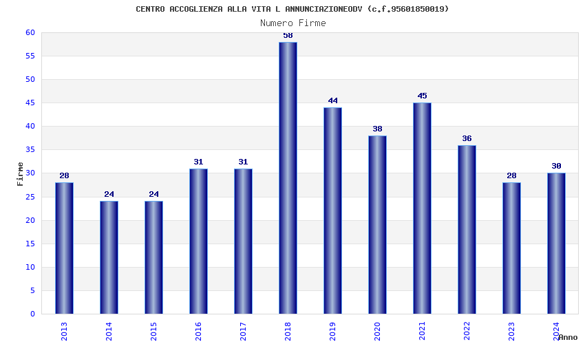 | Anno | Firme | Importi | Media | Naz. | Reg. | Prov. | Comu. |