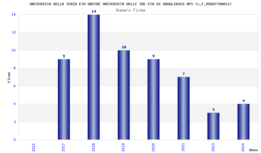 | Anno | Firme | Importi | Media | Naz. | Reg. | Prov. | Comu. |
