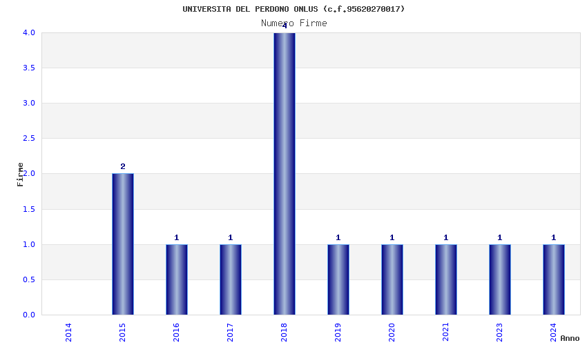 | Anno | Firme | Importi | Media | Naz. | Reg. | Prov. | Comu. |