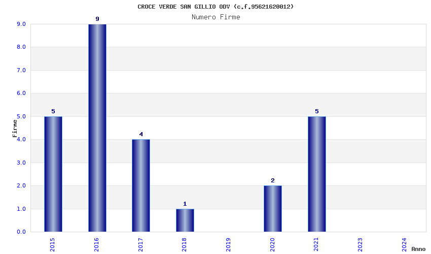 | Anno | Firme | Importi | Media | Naz. | Reg. | Prov. | Comu. |