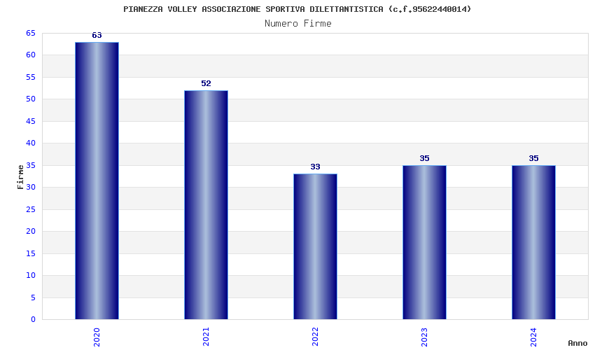 | Anno | Firme | Importi | Media | Naz. | Reg. | Prov. | Comu. |