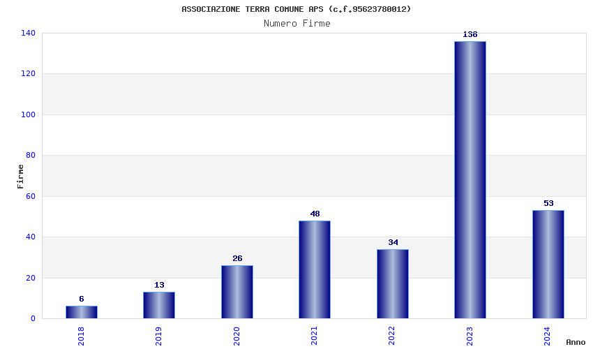 | Anno | Firme | Importi | Media | Naz. | Reg. | Prov. | Comu. |