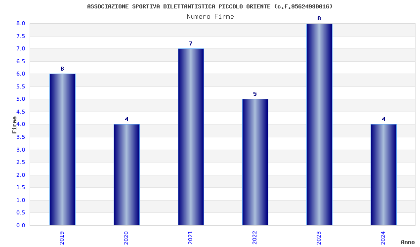 | Anno | Firme | Importi | Media | Naz. | Reg. | Prov. | Comu. |