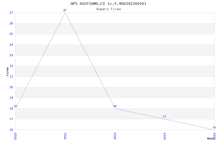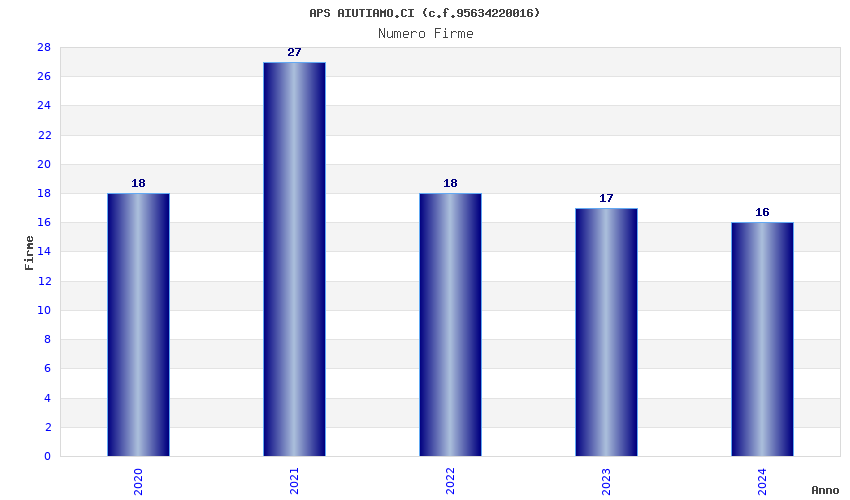 | Anno | Firme | Importi | Media | Naz. | Reg. | Prov. | Comu. |