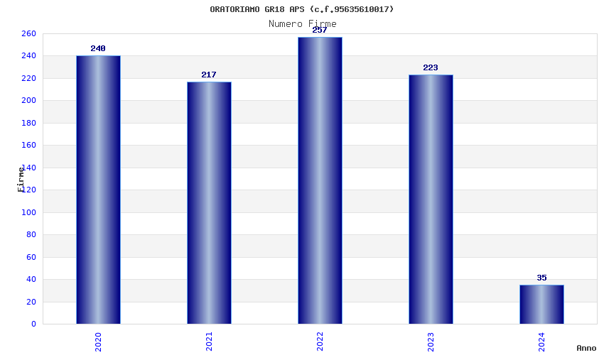 | Anno | Firme | Importi | Media | Naz. | Reg. | Prov. | Comu. |