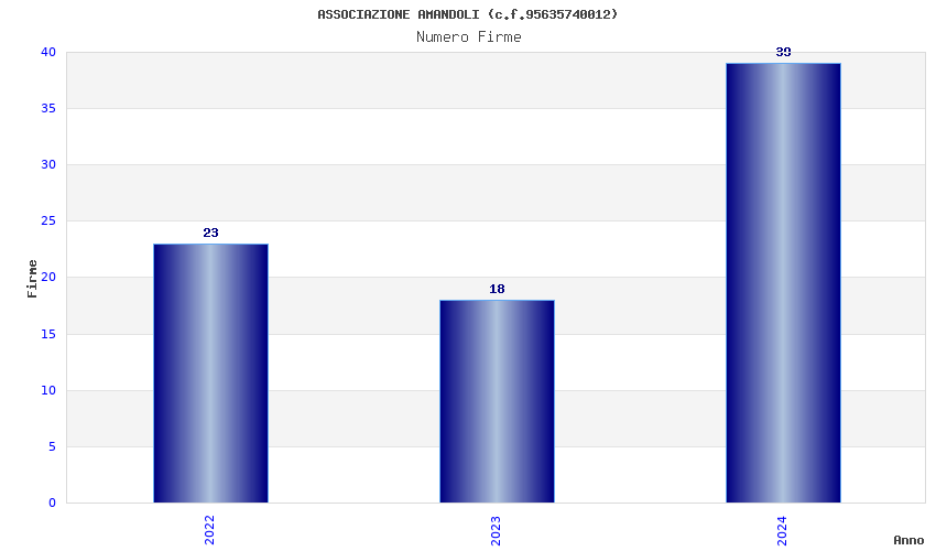 | Anno | Firme | Importi | Media | Naz. | Reg. | Prov. | Comu. |