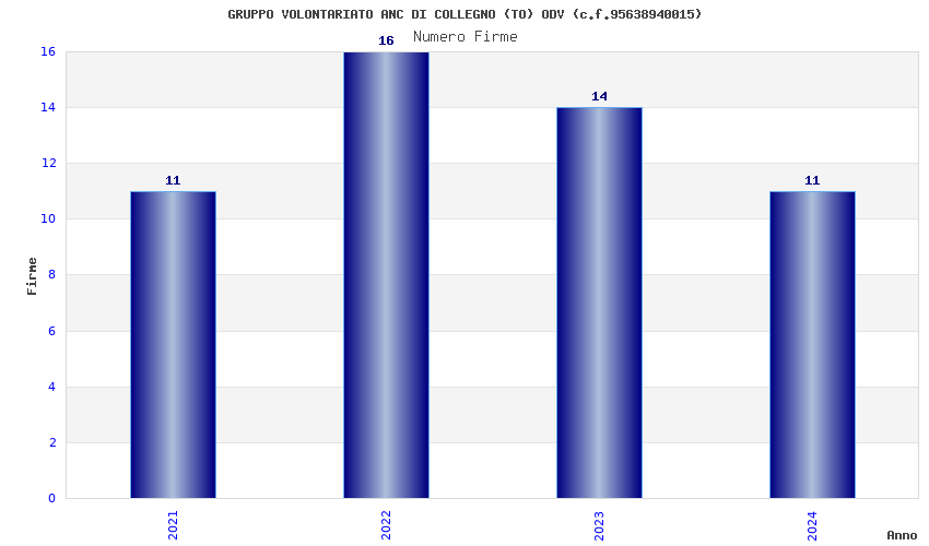| Anno | Firme | Importi | Media | Naz. | Reg. | Prov. | Comu. |