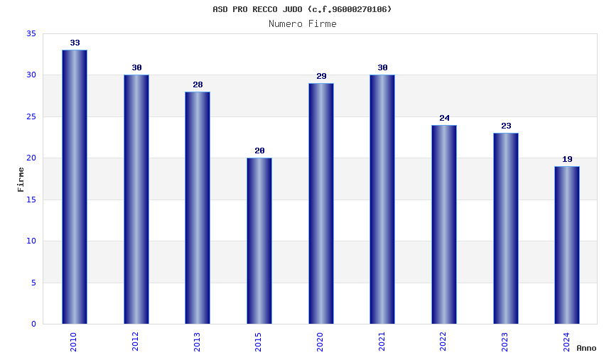 | Anno | Firme | Importi | Media | Naz. | Reg. | Prov. | Comu. |