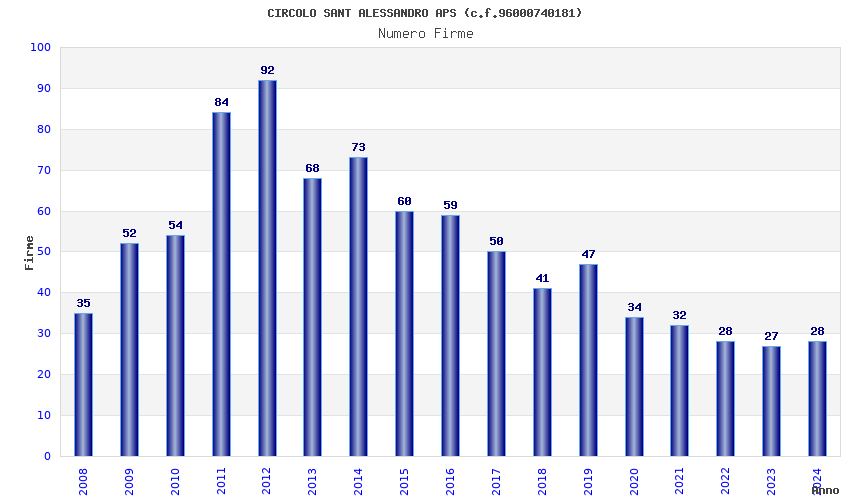 | Anno | Firme | Importi | Media | Naz. | Reg. | Prov. | Comu. |