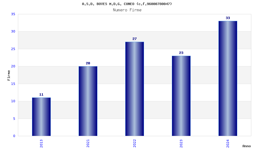| Anno | Firme | Importi | Media | Naz. | Reg. | Prov. | Comu. |