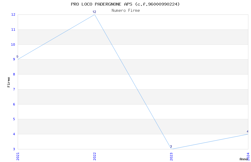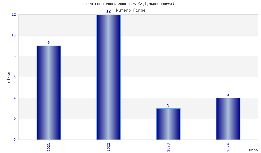 | Anno | Firme | Importi | Media | Naz. | Reg. | Prov. | Comu. |