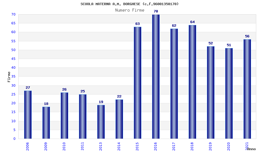 | Anno | Firme | Importi | Media | Naz. | Reg. | Prov. | Comu. |