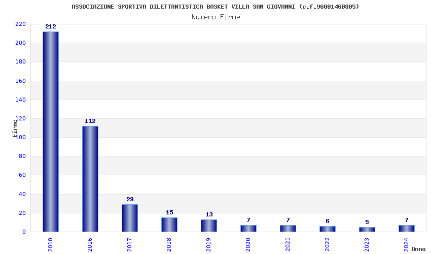 | Anno | Firme | Importi | Media | Naz. | Reg. | Prov. | Comu. |
